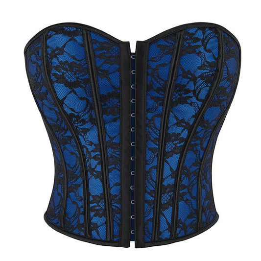 Sweet Deep Blue Strapless Patterned Bodysuit